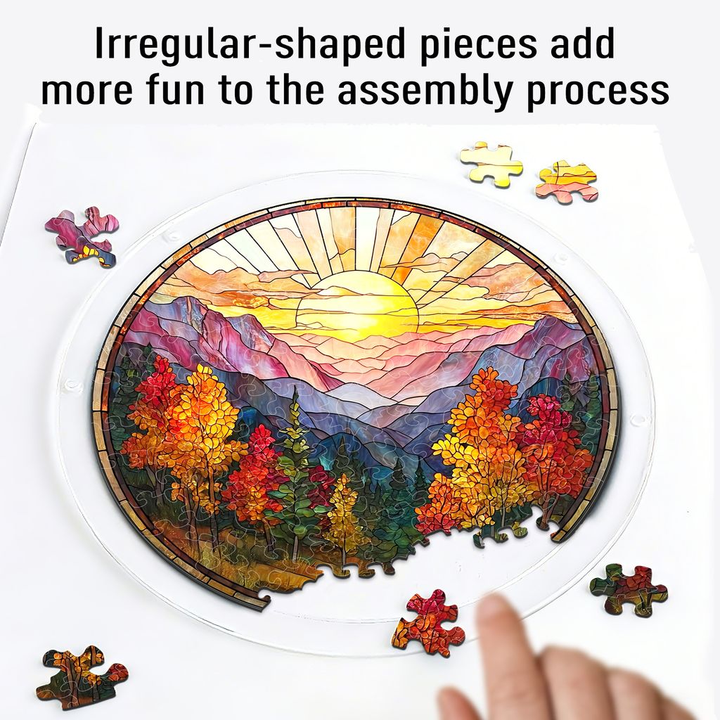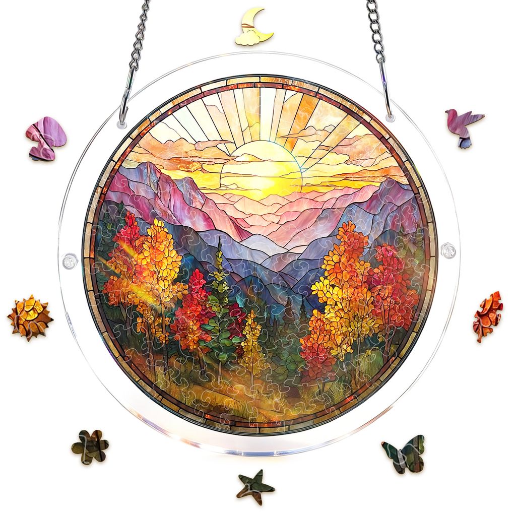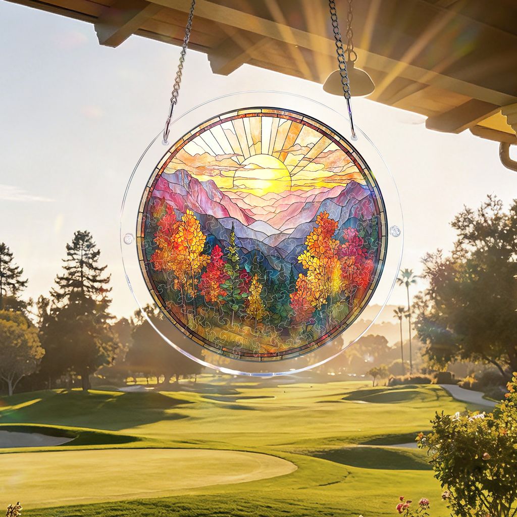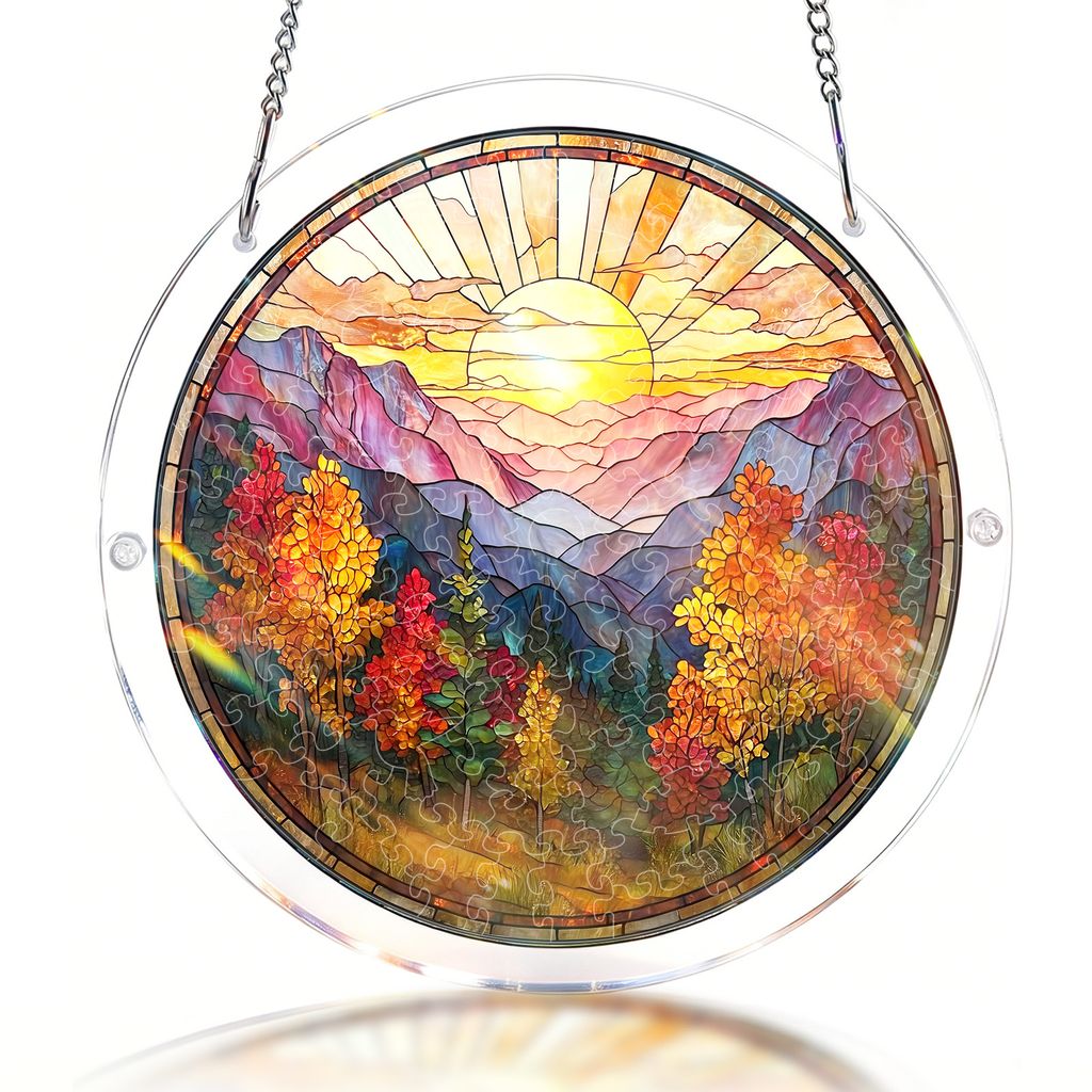 Acrylic Jigsaw Puzzle Suncatcher - Golden Autumn Mountain Sunrise