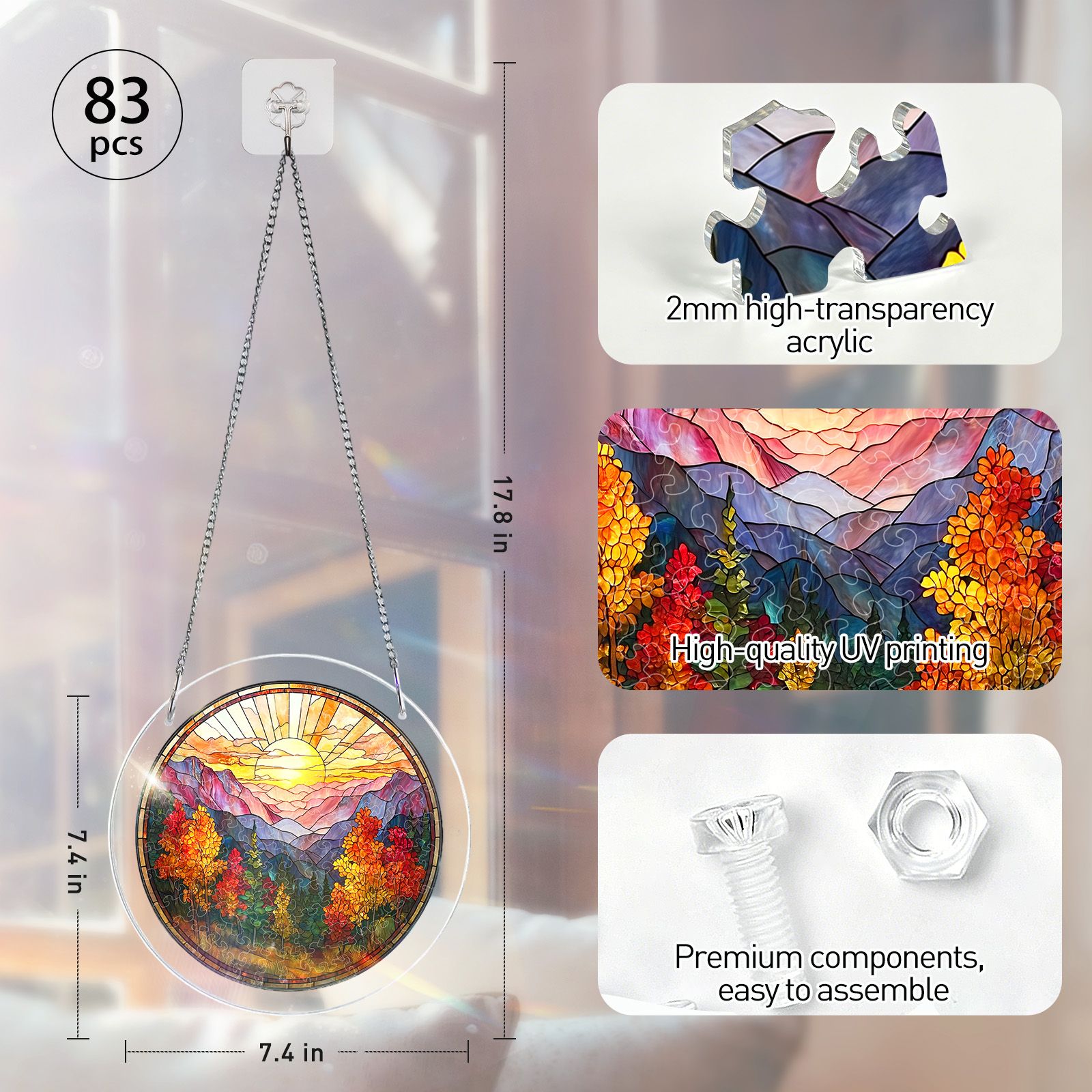 Crafted from premium acrylic, this puzzle doubles as a brilliant suncatcher that captures and refracts sunlight, casting warm, radiant patterns of seasonal color across your home.