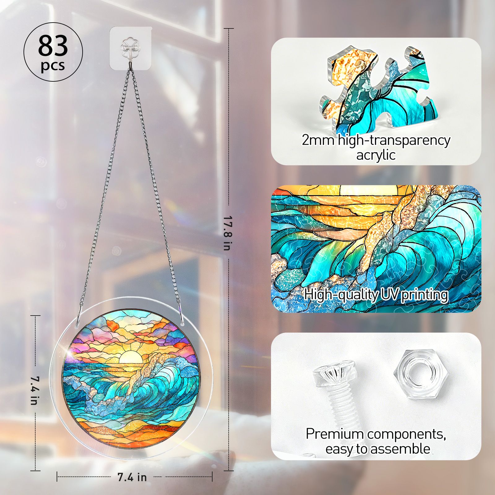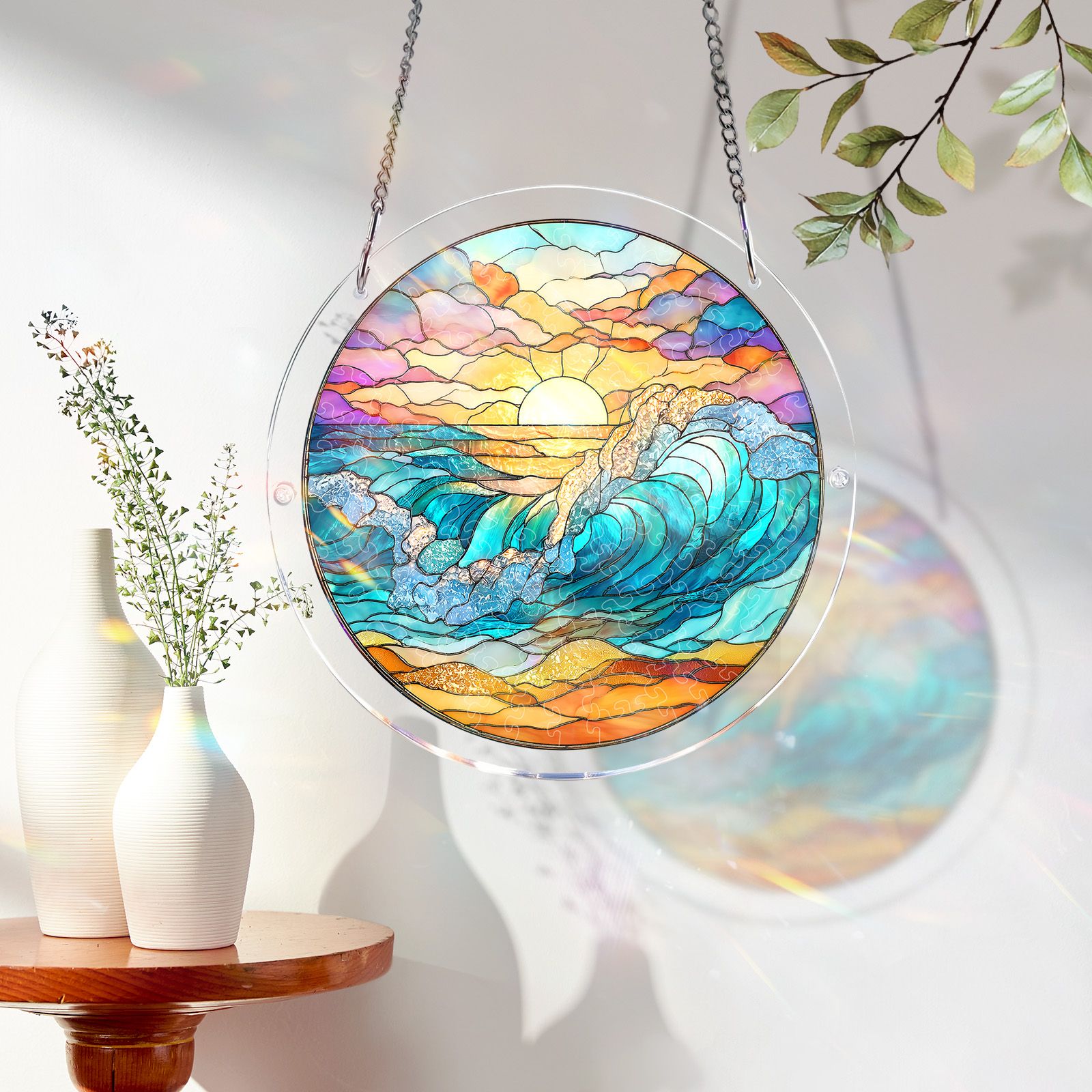 Crafted from premium acrylic, this puzzle doubles as a radiant suncatcher that filters and refracts sunlight, filling your space with a dancing kaleidoscope of coastal colors and warm reflections.