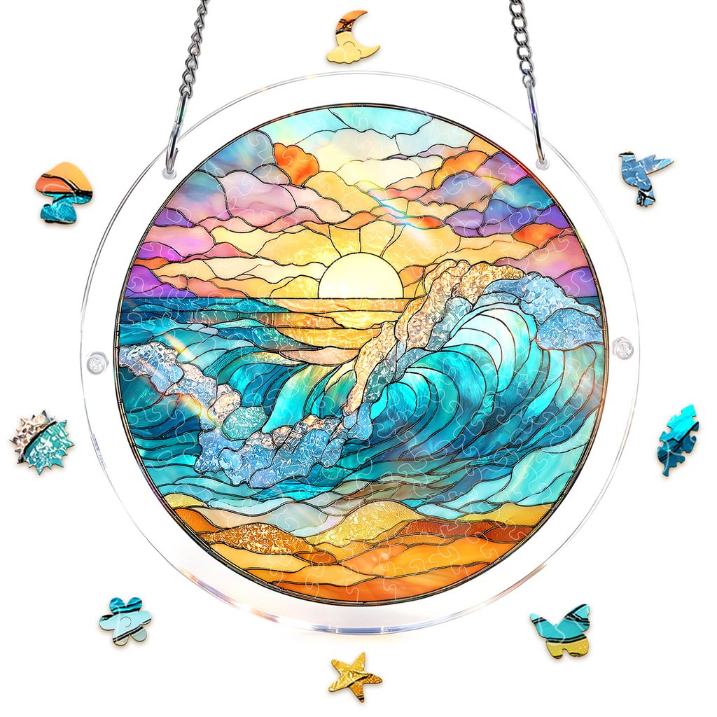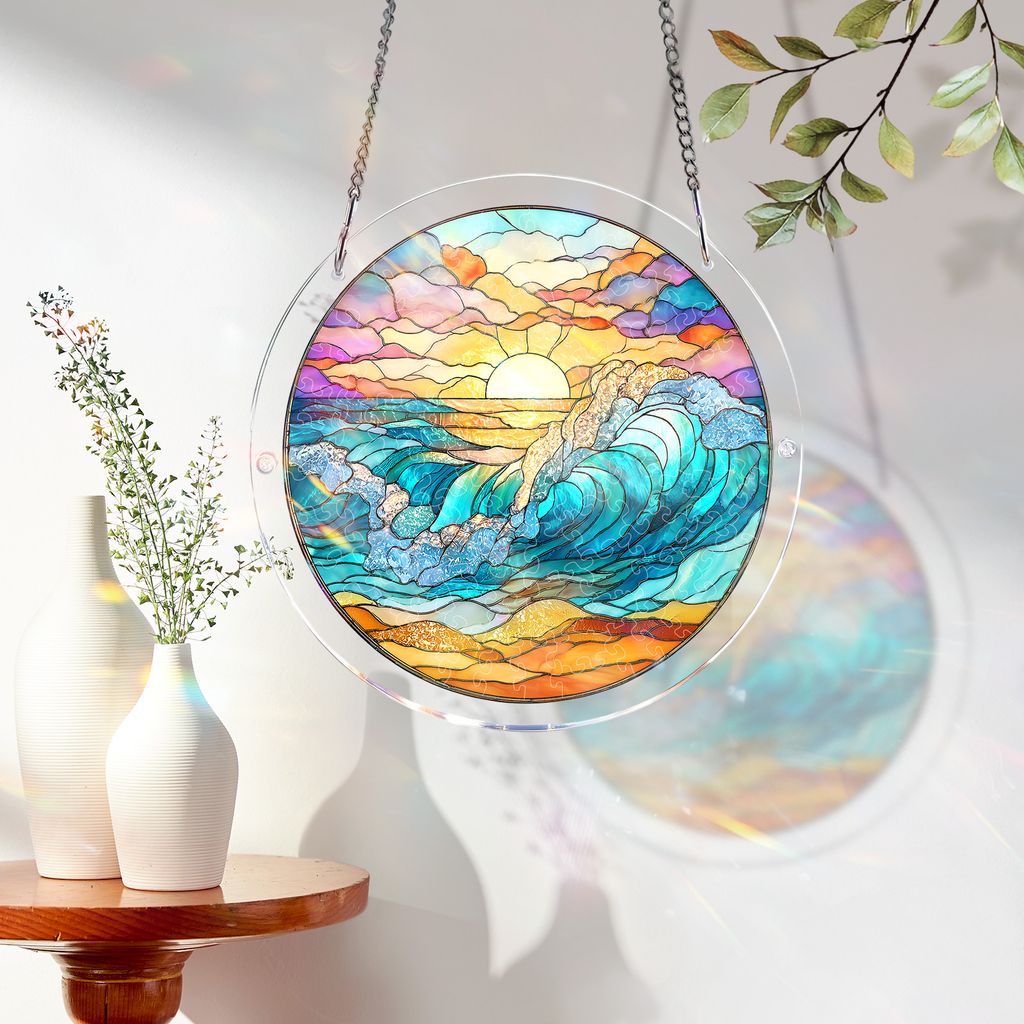Acrylic Jigsaw Puzzle Suncatcher – Golden Tide Sunrise
