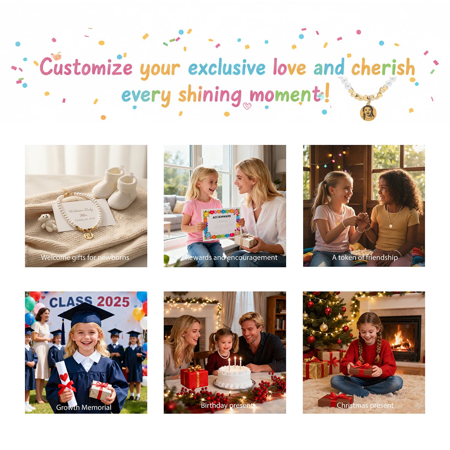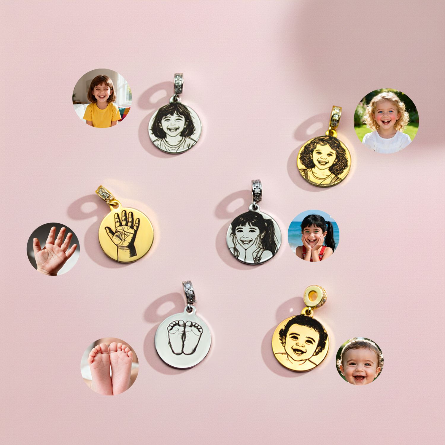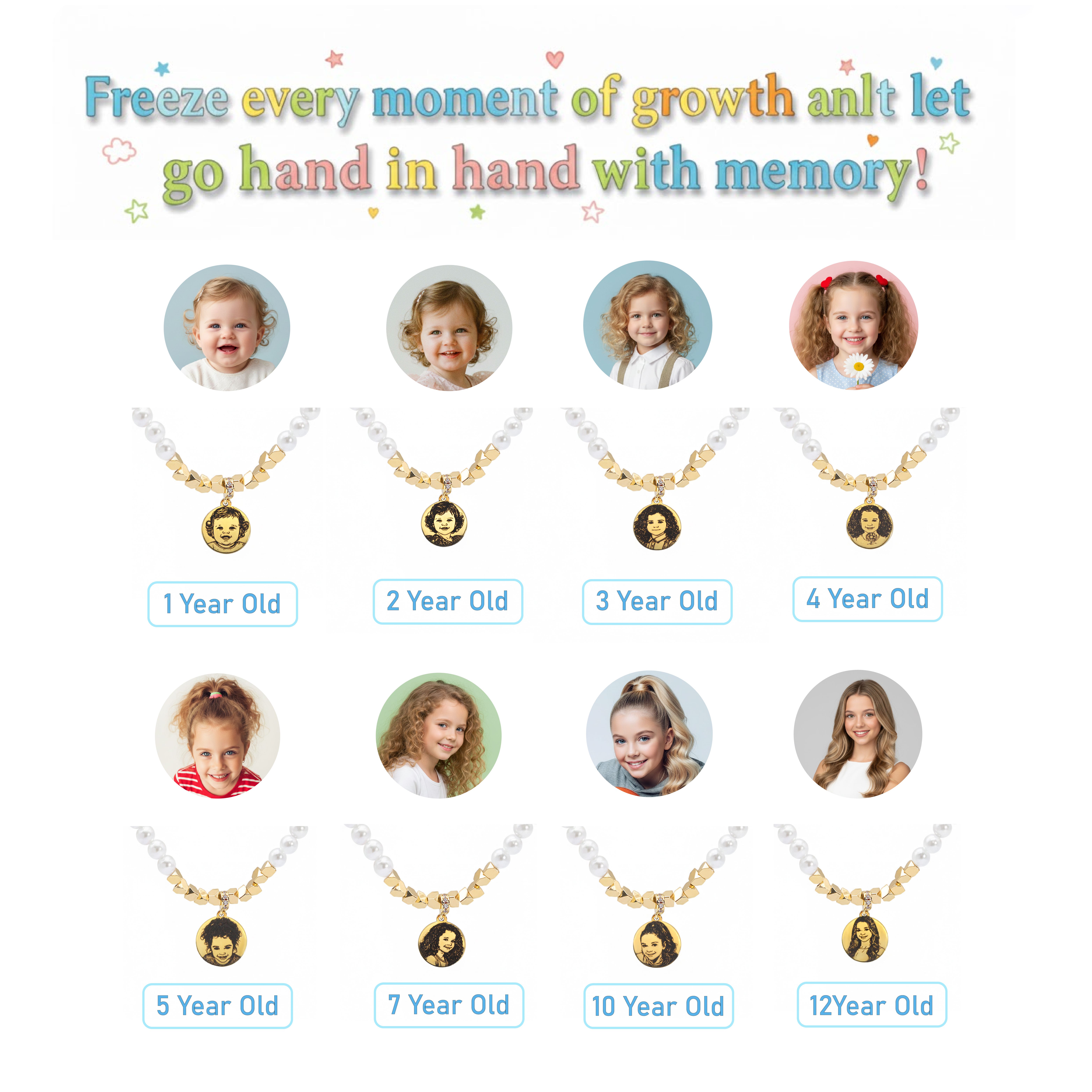 This customized pearl necklace captures the milestones of life in a touching and artistic way. Each pendant features a hand-drawn portrait based on your photo, paired with an elegant back engraving to mark a name, date, or heartfelt message.