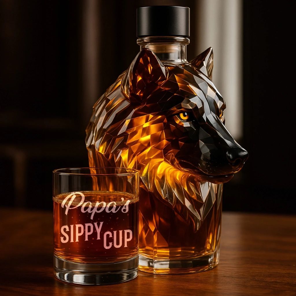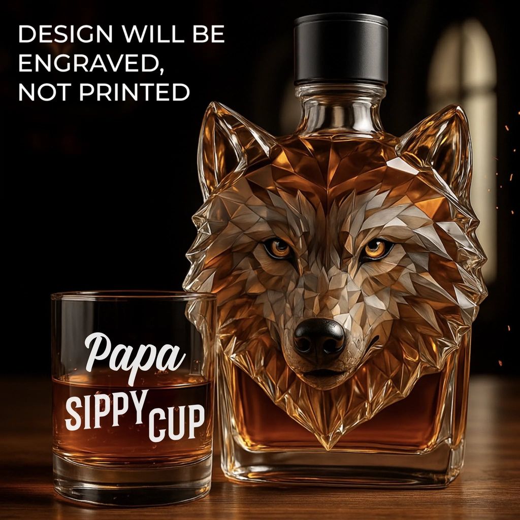 Elevate your whiskey experience with this custom-crafted whiskey decanter. Designed with a stunning 3D engraved wolf head, every detail is precision-cut into the glass—not printed—giving it a luxurious, sculpted feel that commands attention.