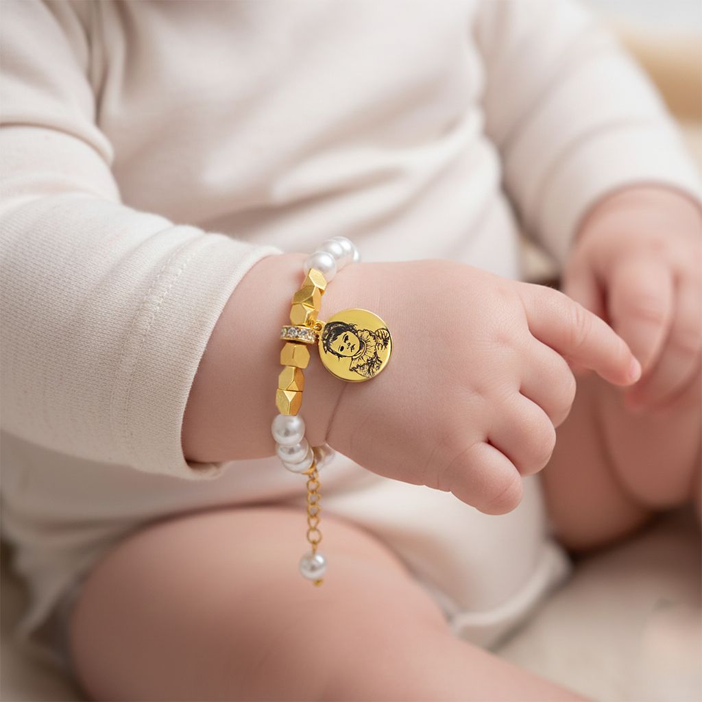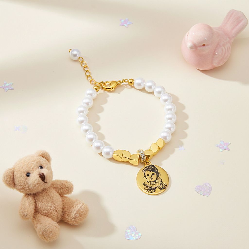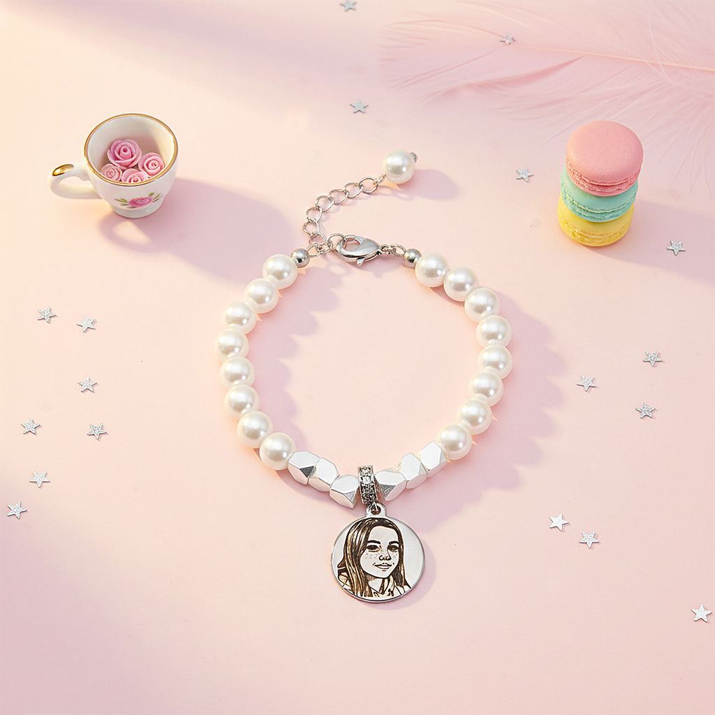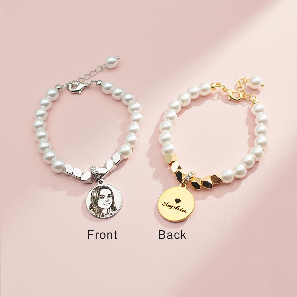 This customized pearl necklace captures the milestones of life in a touching and artistic way. Each pendant features a hand-drawn portrait based on your photo, paired with an elegant back engraving to mark a name, date, or heartfelt message.