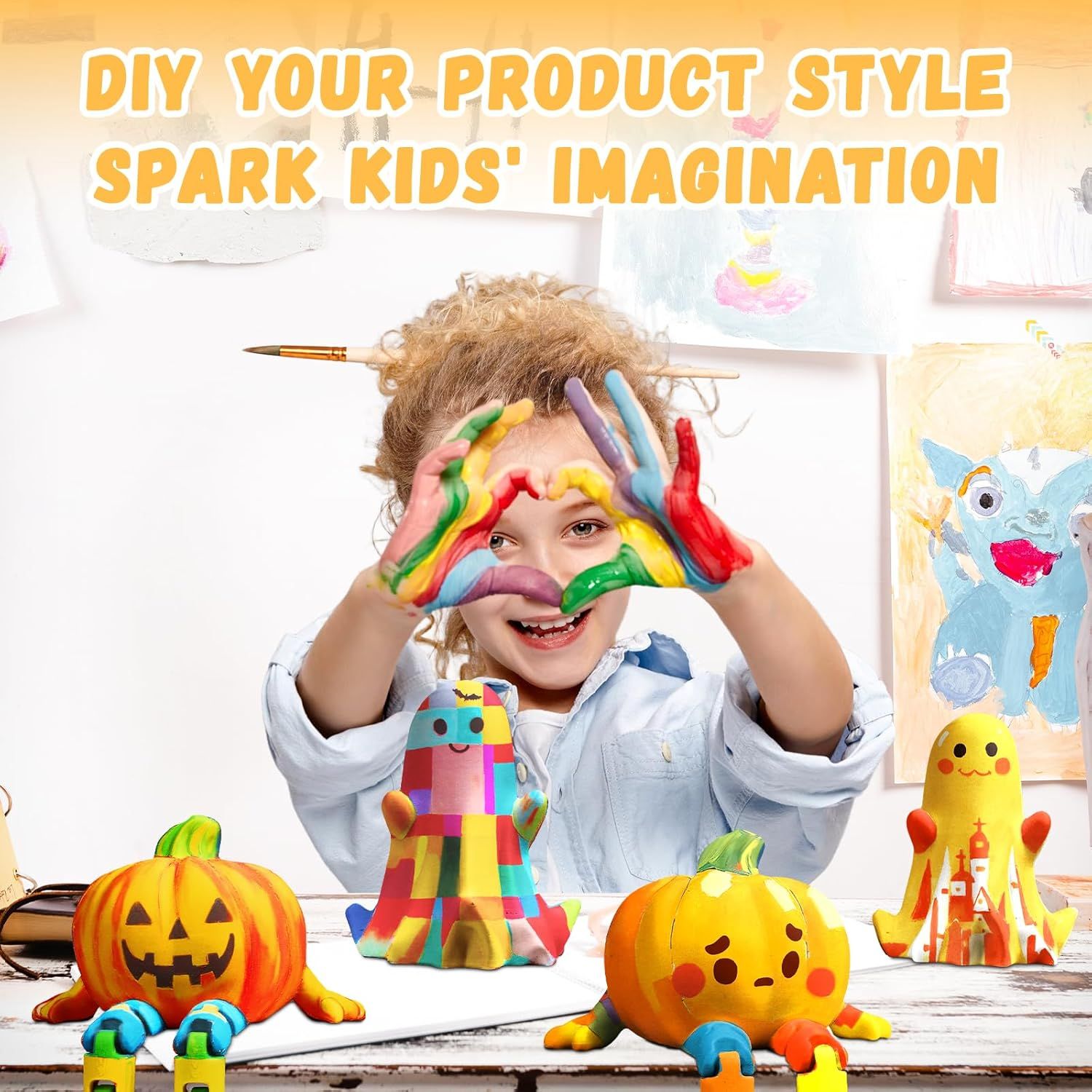 🎨 Endless Creativity – Every child is an artist 👩🎨👦. From classic orange pumpkins 🎃 to dreamy galaxy ghosts 🌌👻 or pastel cuteness 💕, the possibilities are endless ✨. With a full color palette 🌈 and freedom to mix shades, kids can design a lamp that shines with their imagination and personality 🌟.
