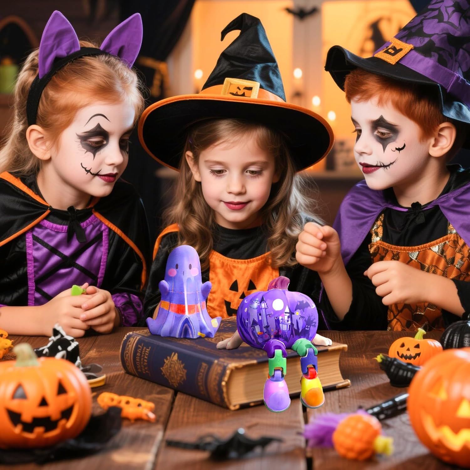 🎉 Fun for Every Occasion – Perfect for Halloween parties 🦇, classroom crafts 🏫, or cozy weekends at home 🏠. Kids gather around, painting pumpkins 🎃 and ghosts 👻, sharing laughter 😂, and creating lasting memories 💕. Screen-free fun with a magical glow ✨.