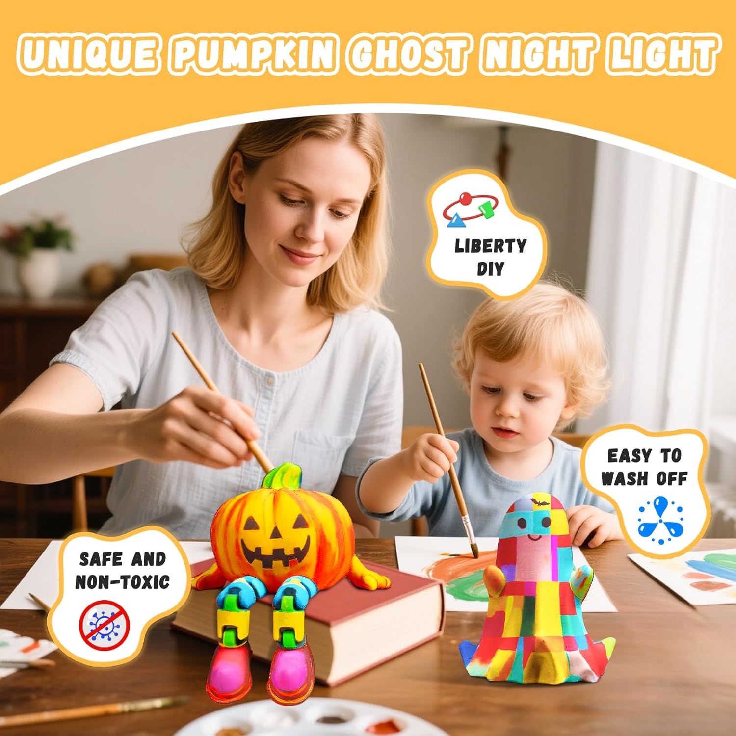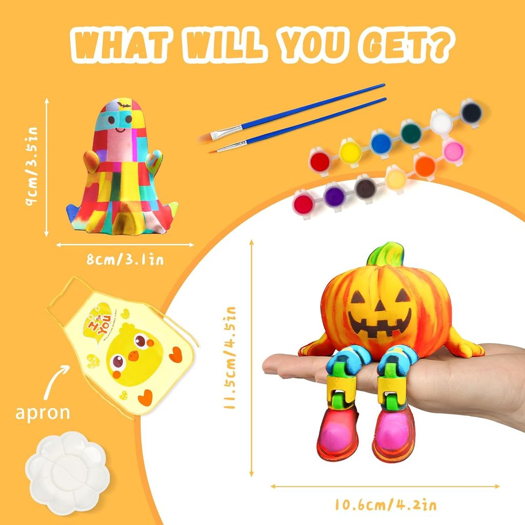 🛡️ Safe & Kid-Friendly – Pumpkin 🎃 and Ghost 👻 shells are made of durable PLA resin with smooth edges ✨. Non-toxic paints 🎨 keep creativity safe, while the cool-touch LED 💡 prevents overheating. The button battery 🔋 is securely stored at the bottom for worry-free fun. Parents can relax 👍 while kids unleash their imagination 🌈.