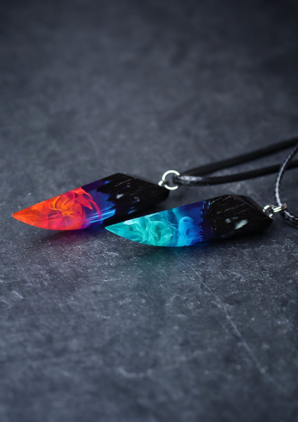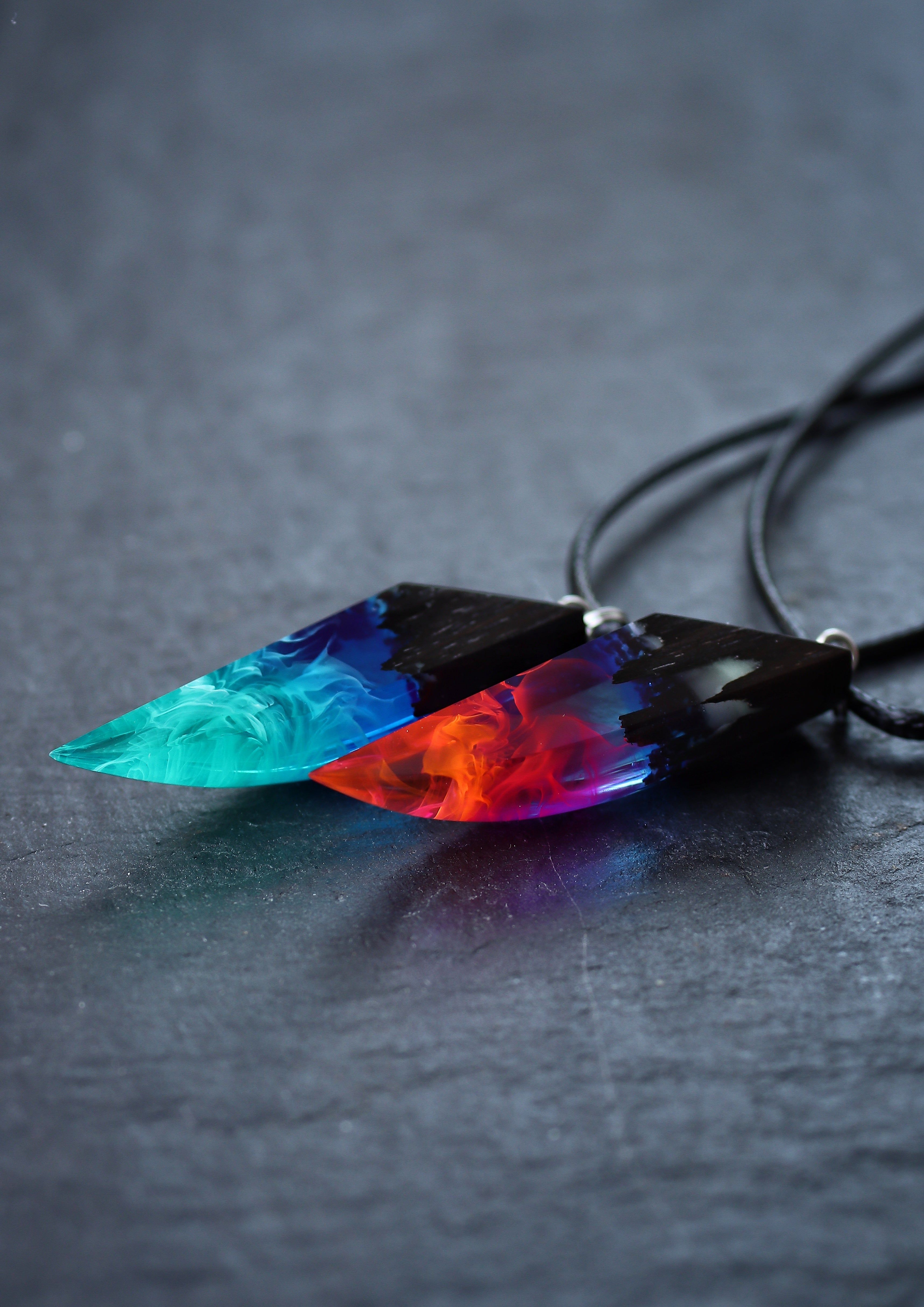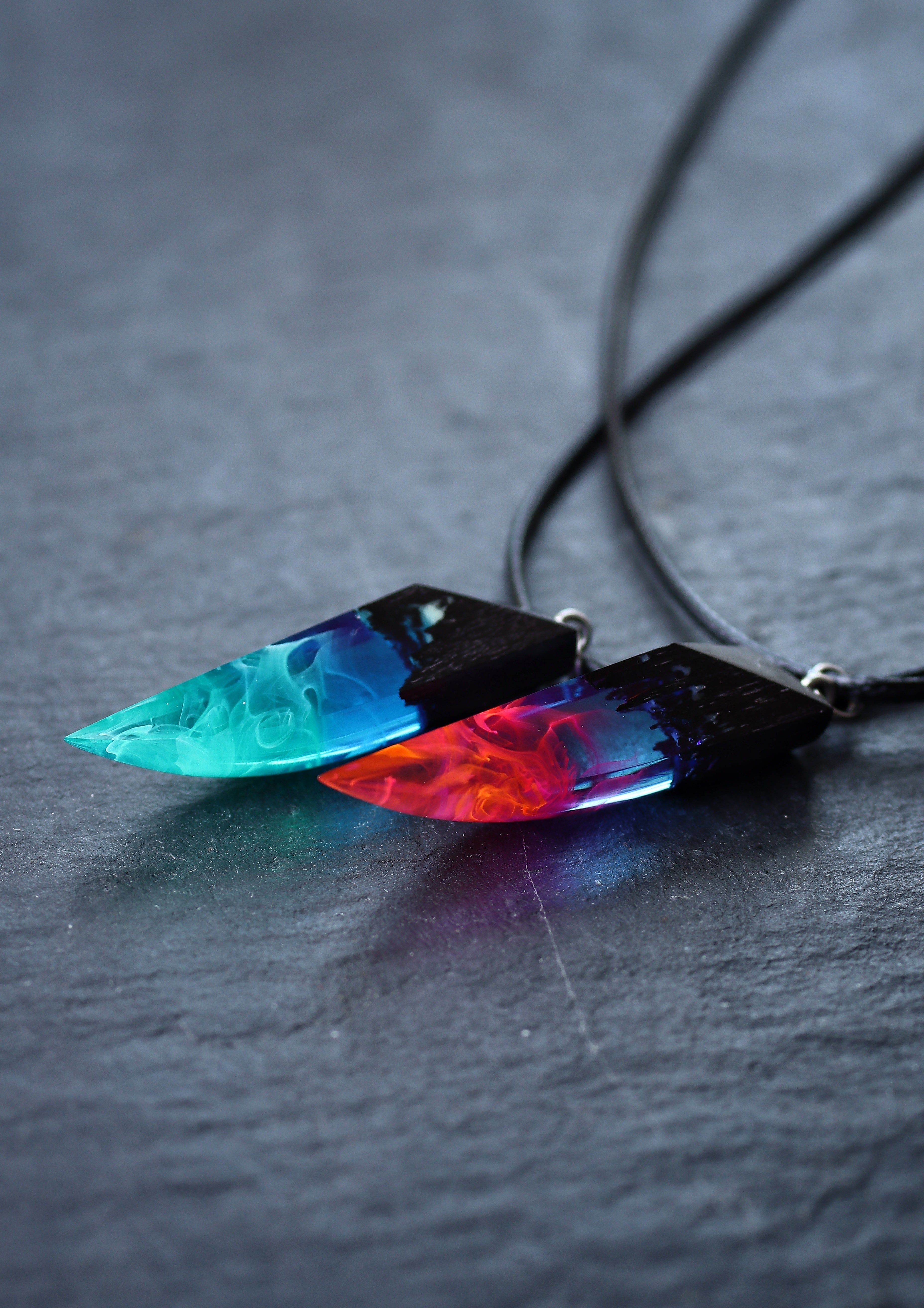 Epoxy resin and wood Couple Nightfall & Northern lights pendant