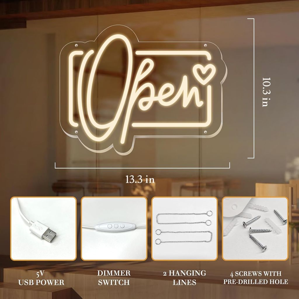 Make your business shine with this vibrant OPEN neon sign! Ultra-bright LED lights grab attention day and night, perfect for windows, walls, or entrances to boost your storefront’s appeal.