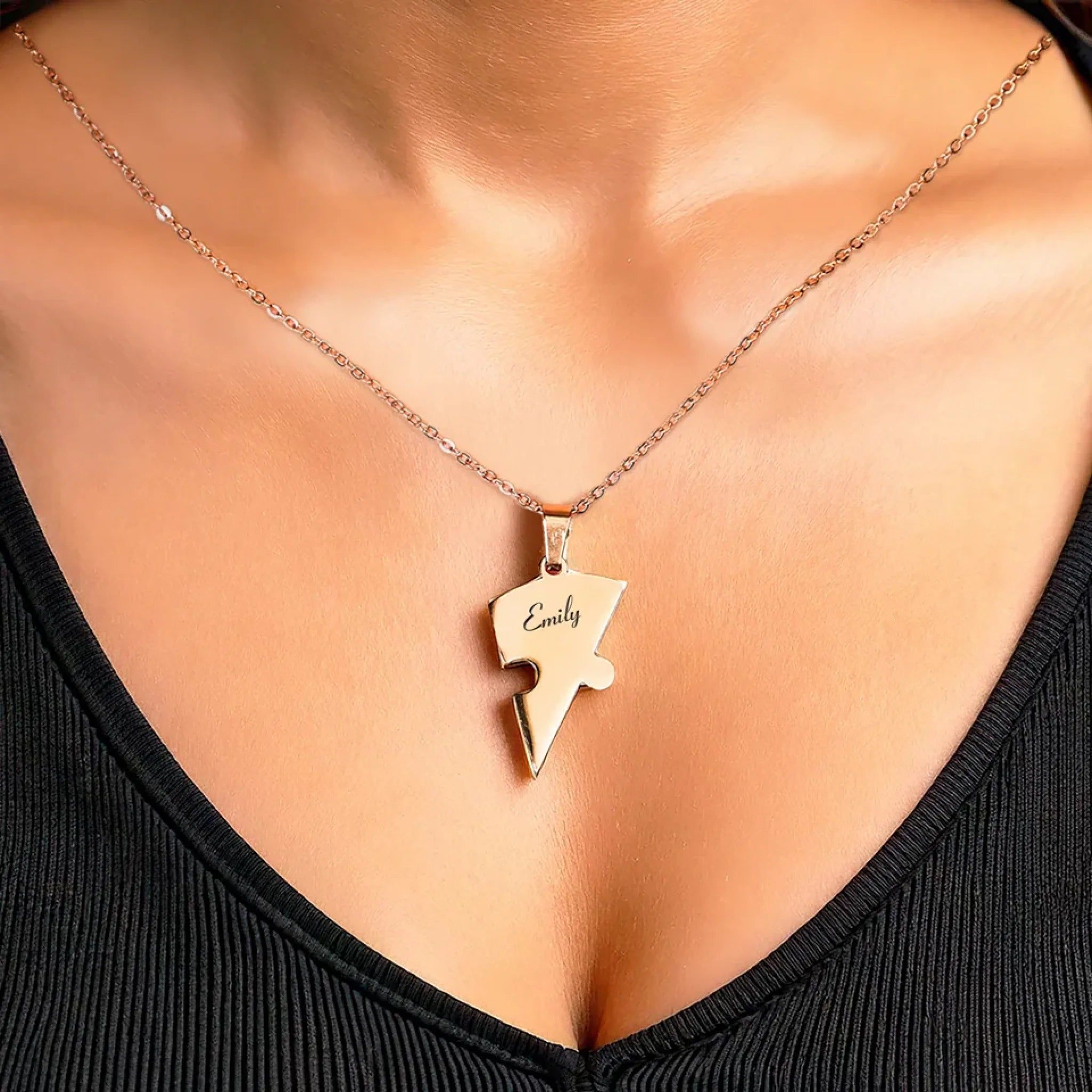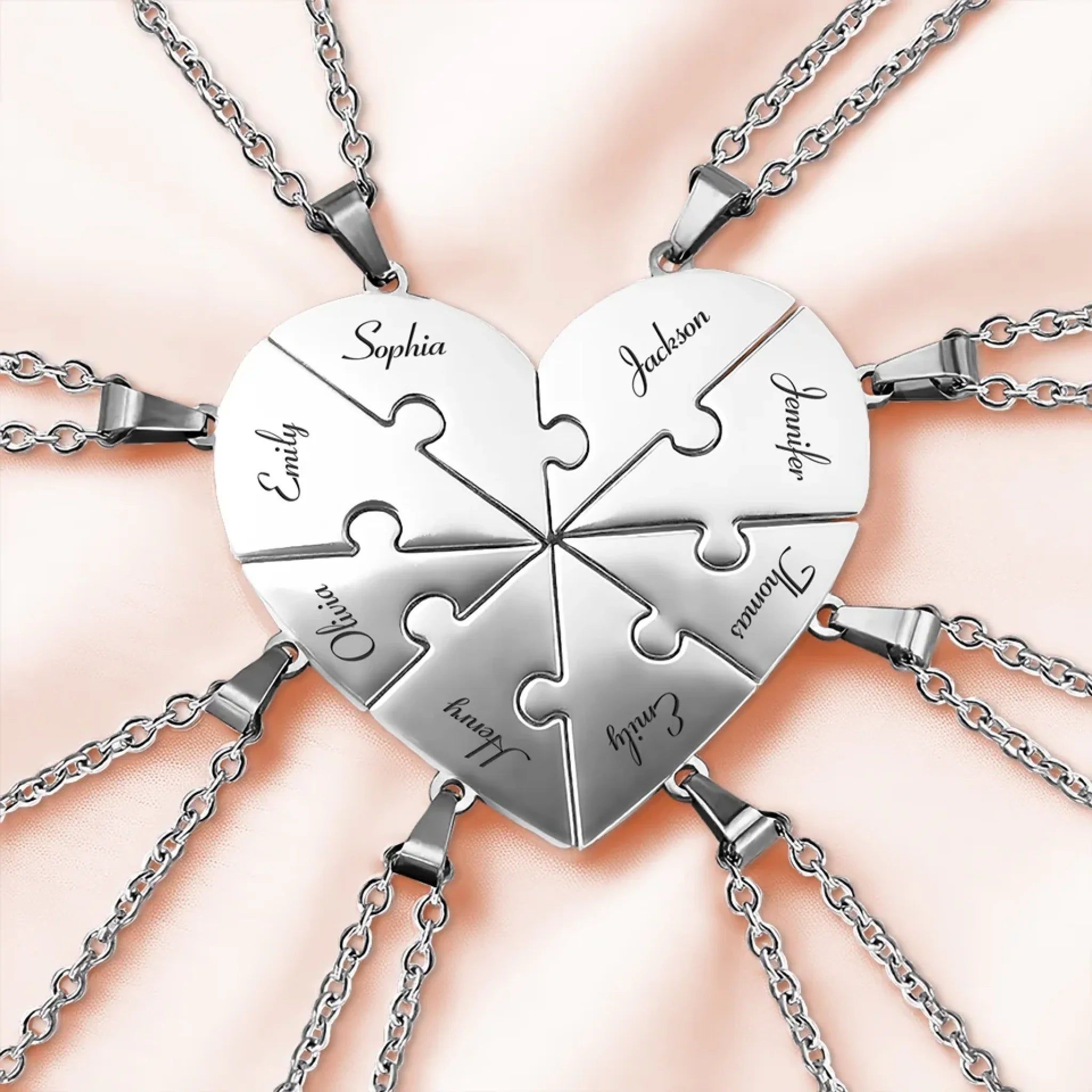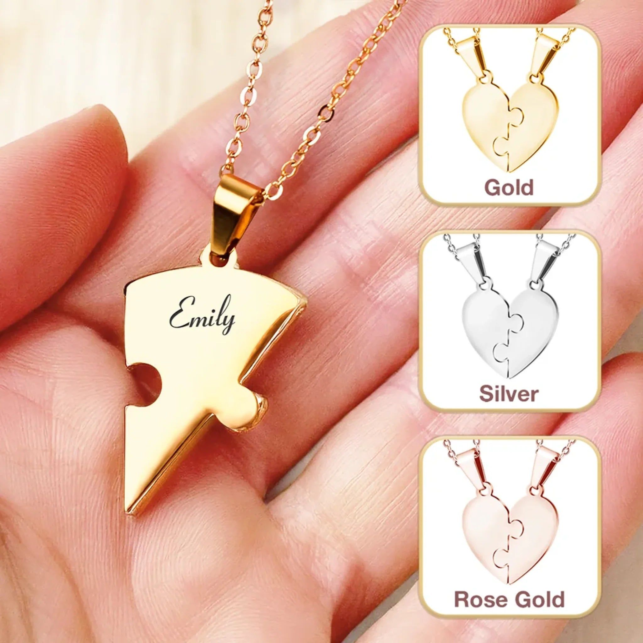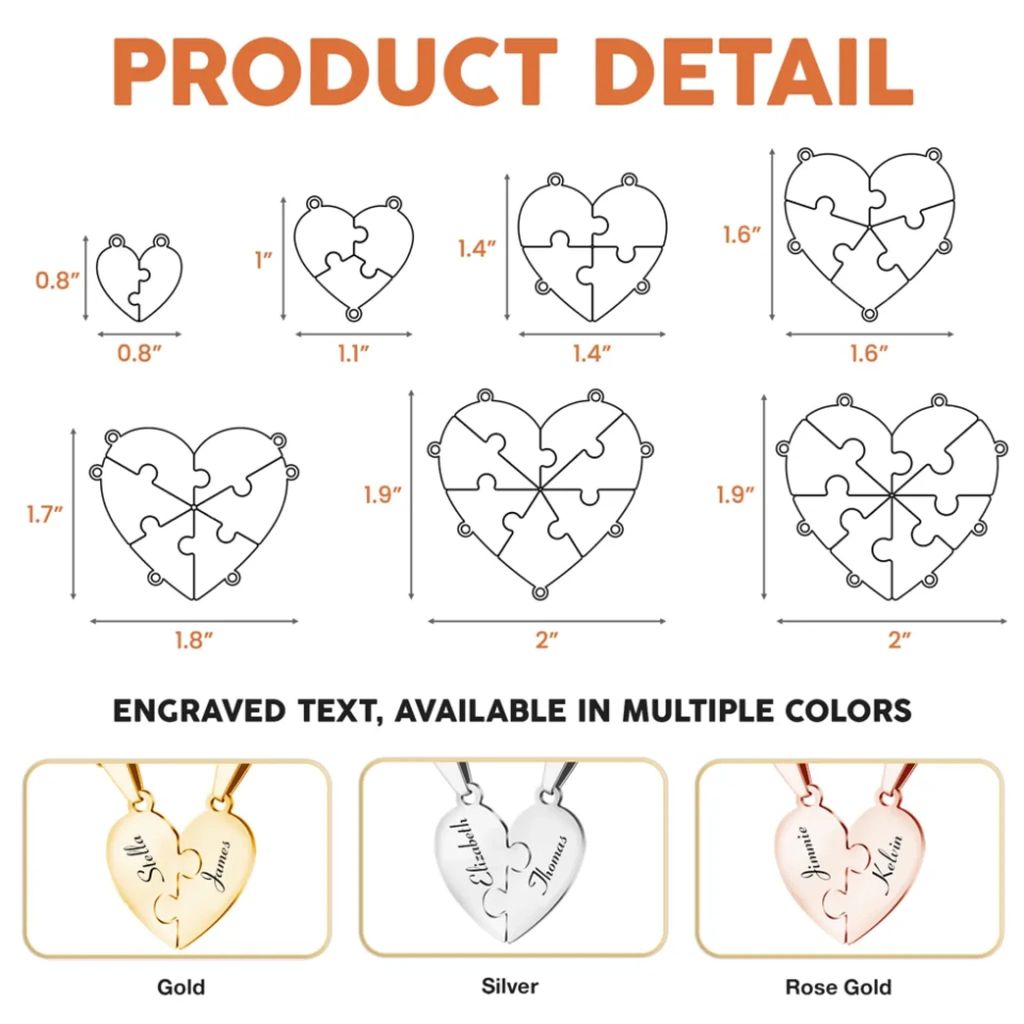 Personalized Puzzle Heart Necklace Set – Custom Name Engraved Family or Friendship Jewelry