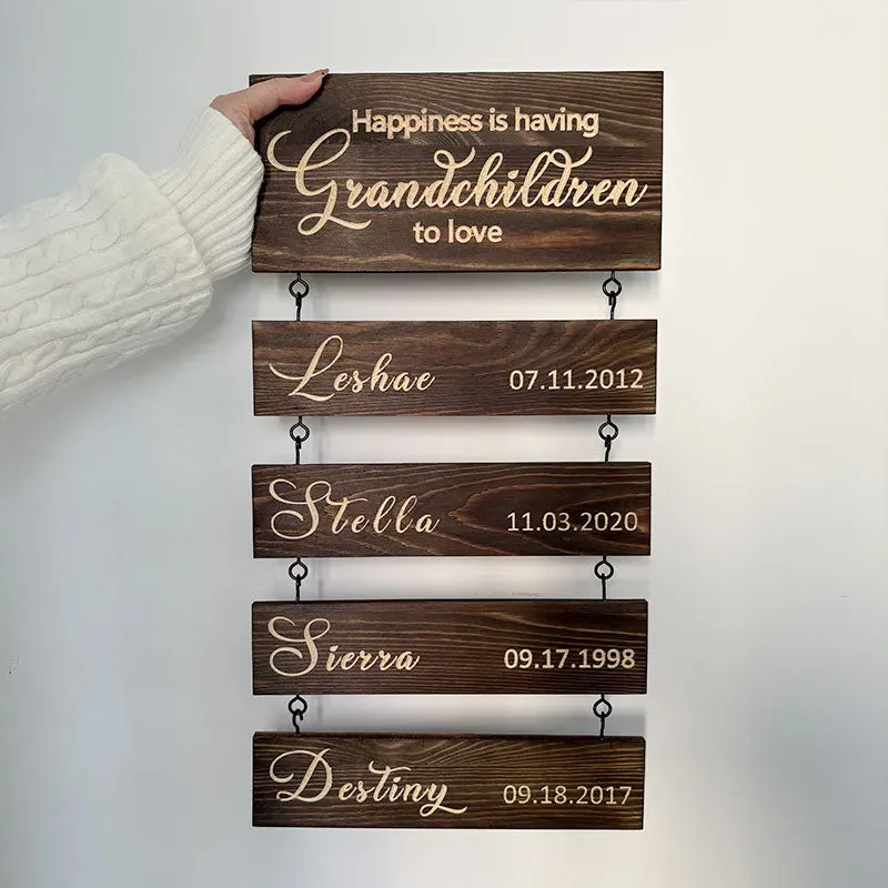 Personalized Grandkids Hanging Sign | 2025 Version Engraved Design