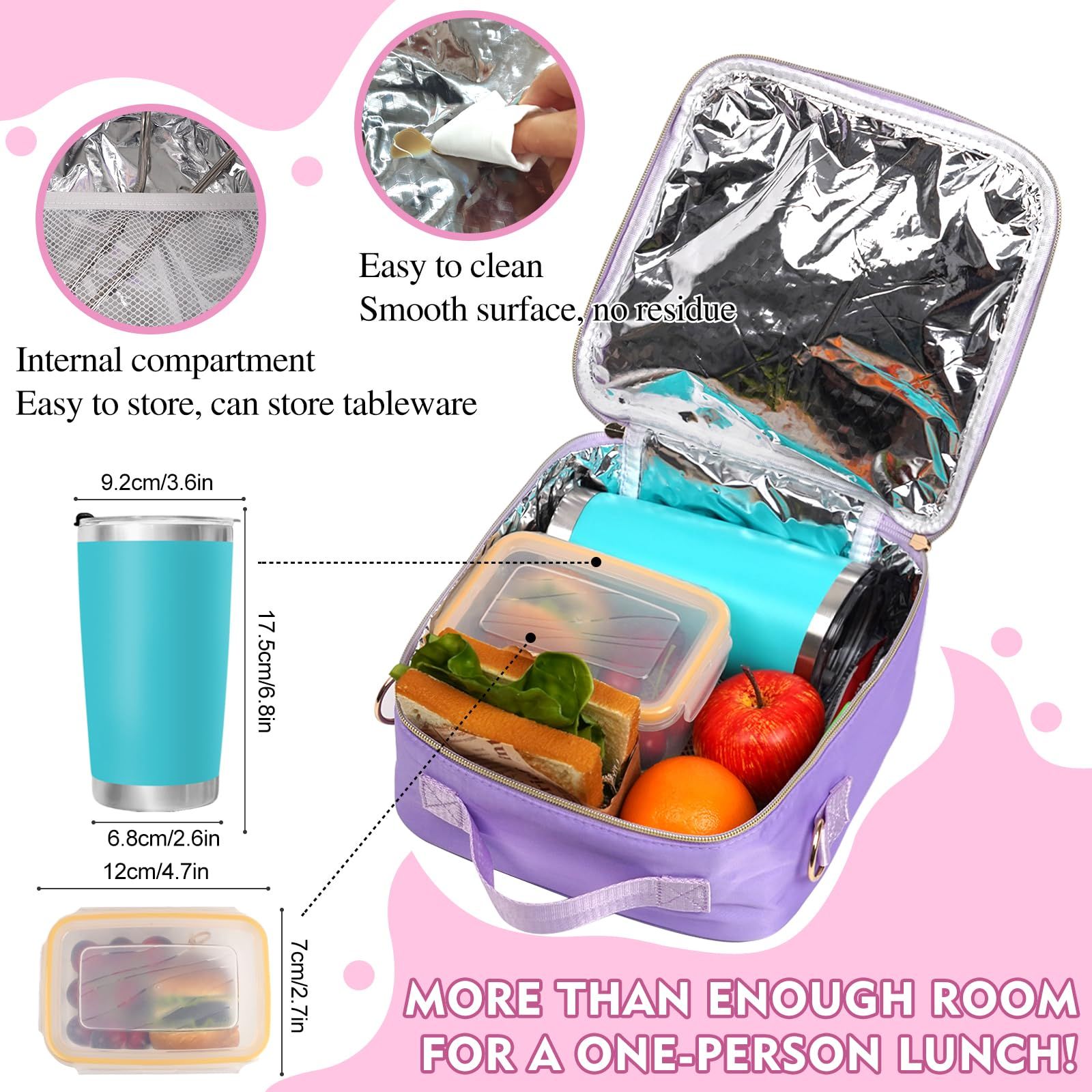 Made from durable Oxford fabric + thick foil lining to keep food fresh & drinks cold 🍓💦. Easy to clean inside & out!
