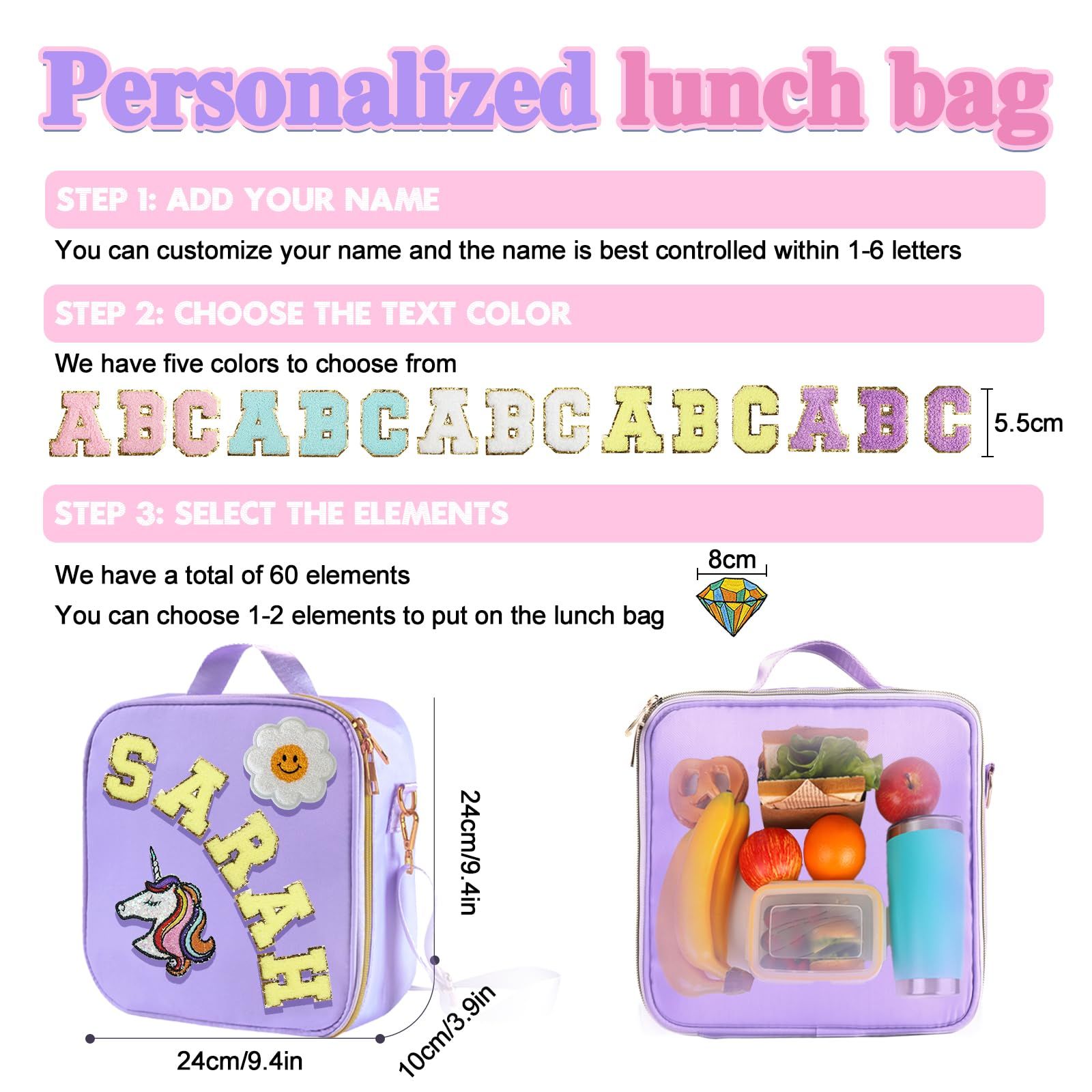 Personalize with your kid’s name (up to 6 letters) in 5 fun colors 🌈 & choose from 60+ cute icons 🐶🦄🍕—no more mix-ups at school!