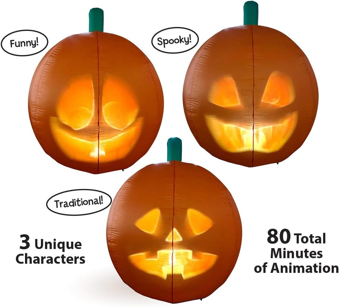 A2: It features patented ANIMAT3D projection technology with a built-in short-throw projector that brings the pumpkin to life.