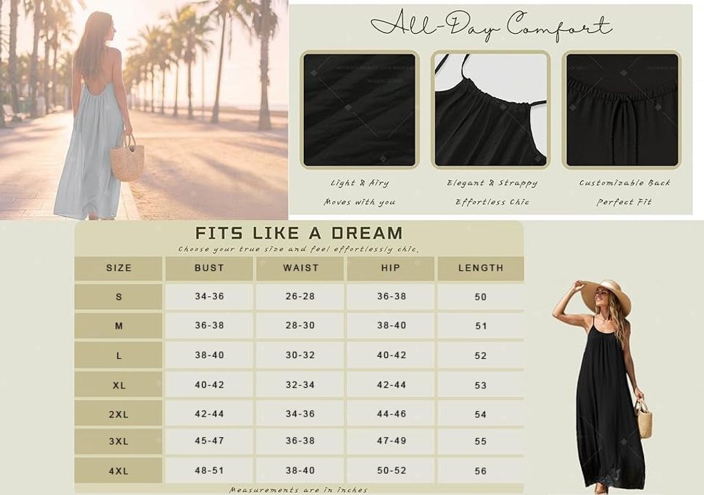 Perfect for vacations, beach walks, or outdoor dinners—easy to pack and comfortable to wear. Minimalist spaghetti straps The thin straps add a minimalist, elegant touch, ideal for layering or letting your skin breathe. The elegant open back design makes you look even more sexy and beautiful!
